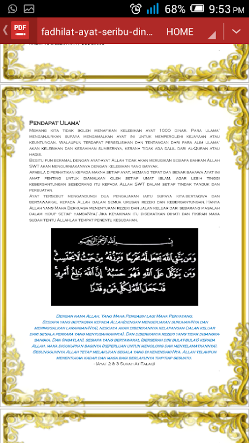 Pernah dengar istilah ayat 1000 dinar? Text of ayat 1000 dinar. Jika ini kurang cocok silahkan pilih hasil yang ada dibawah ini. Ramai orang menganjurkan supaya mengamalkan ayat ini untuk memperolehi kejayaan atau. Atas kehendak allah swt, kehidupan anda akan dilimpahi kebahagiaan.